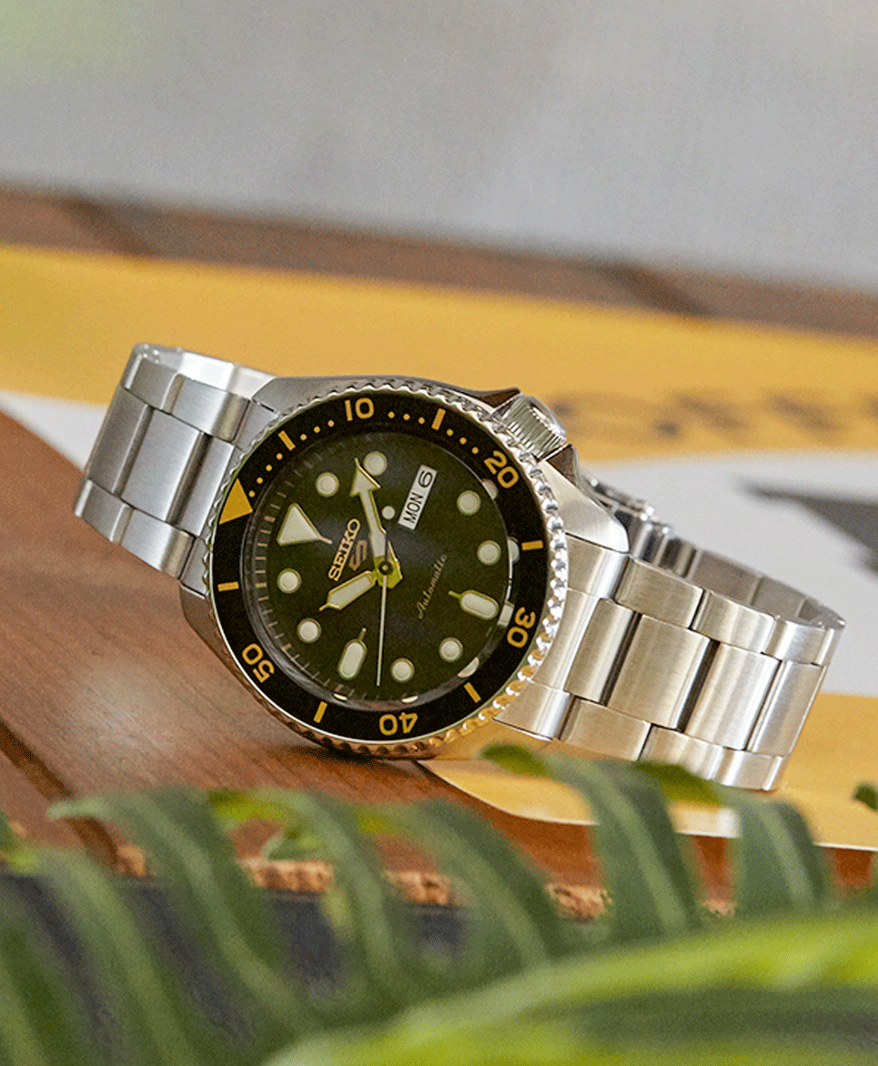 A Seiko 5 Sports 50 éven át folyamatosan magas szintű megbízhatóságot, teljesítményt és értéket képviselt a mechanikus órák szerelmesei számára. Most egy új dizájn és új kollekció létrehozásával újjászületik ez a közkedvelt időmérő. Az új kollekció minden változata nyíl alakú percmutatóval, egyedi indexekkel és egy irányban forgó lünettával rendelkezik. A sorozat minden darabját a Seiko jól bevált és megbízható automata 4R36 kaliberrel alkották meg, amely 24 köves, kézi felhúzóval, 41 órás járástartalékkal rendelkezik. Ez a karóra automata szerkezettel szerelt, amely a kéz mozgásából származó mozgási energiát alakítják át a működéshez szükséges energiává úgy, hogy a szerkezetben található súly körkörös mozgása során a rugó felhúzásra kerül.