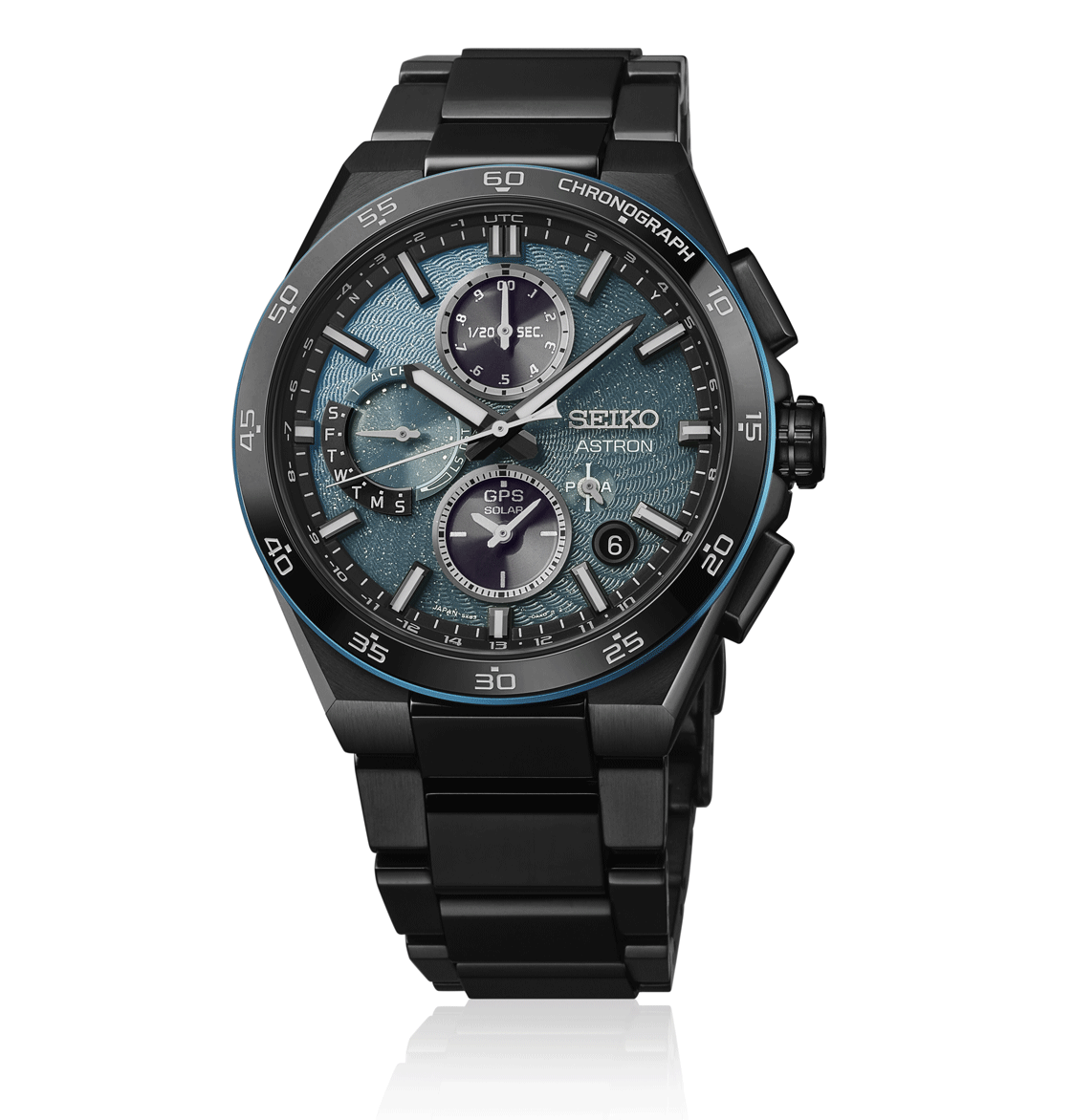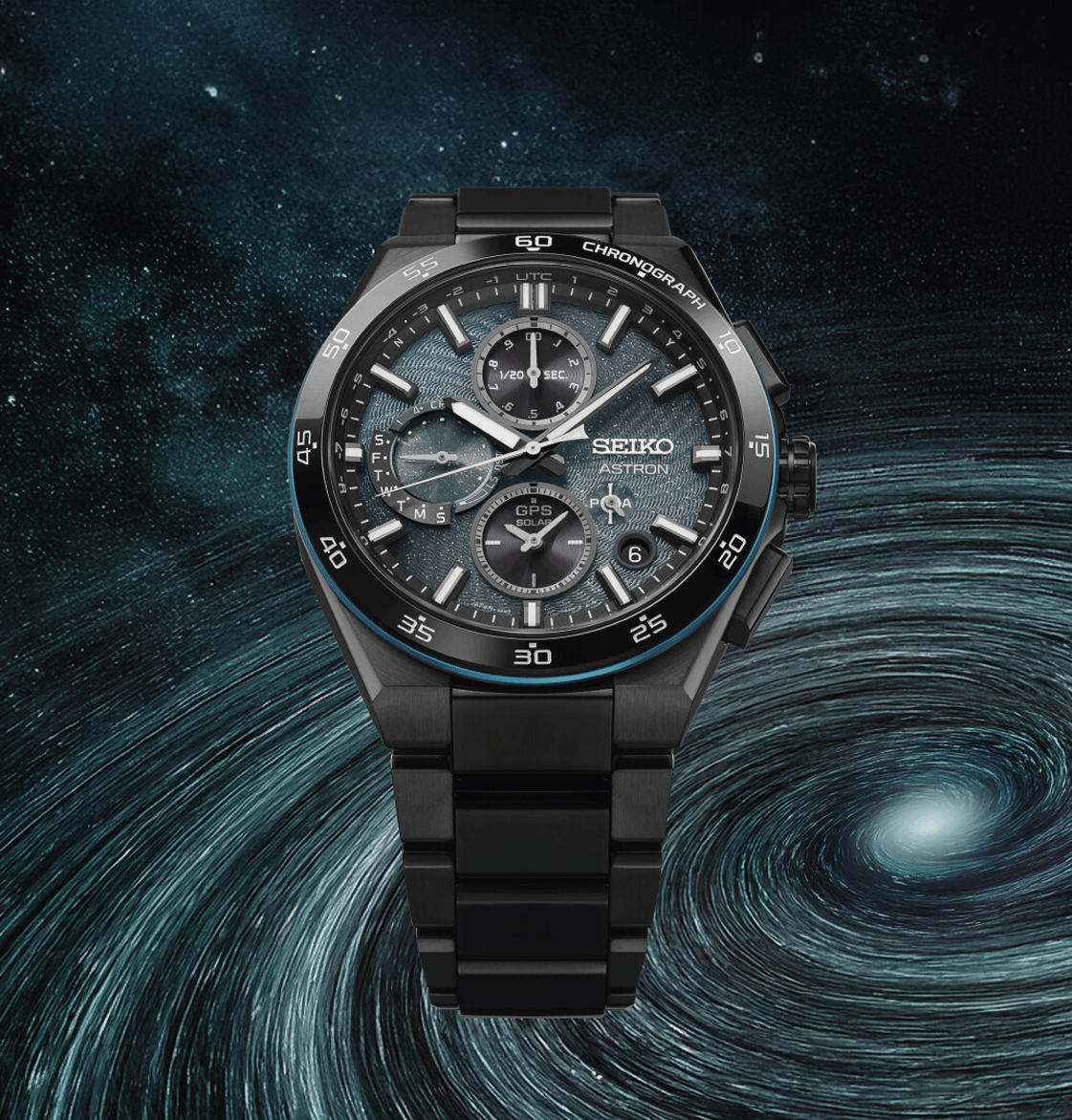 A Seiko Astron SSH187J1 “Spiral Galaxy” Limited Edition egy limitált kiadású GPS Solar Dual-Time Chronograph karóra, amely a Seiko Astron 5X sorozat legújabb technológiáját tartalmazza. A meghajtást a 5X83 kaliberű GPS Solar szerkezet biztosítja, amely GPS-jelek segítségével automatikusan igazítja az időt és a dátumot a tartózkodási helyed időzónájához, így a világ bármely pontján pontos időt ad. A beépített napenergia-technológia teljes feltöltéssel körülbelül 6 hónapos járástartalékot biztosít, energia-takarékos üzemmódban akár hosszabb ideig is működik. A számlap különleges kialakítású: sötét türkizkék alapon dombornyomott spirálminta és finoman csillogó felület jelenik meg, amely a galaxis örvénylő csillagainak dinamikáját idézi vissza. A kronográf funkció és dual-time megjelenítés mellett a LumiBrite bevonatú mutatók és indexek biztosítják a jó olvashatóságot gyenge fényviszonyok között is. A tok és a szíj titánból készült fekete Super-Hard bevonattal, amely jó karcállóságot és könnyű viseletet eredményez, miközben a kerámia betétes szíj középrész vizuálisan és strukturálisan is emeli az összképet. A tok mérete 43,3 mm átmérő és 13,4 mm vastagság, a domború zafír kristály tükröződésmentes bevonattal pedig segíti a zavartalan leolvasást. A háromrészes csat biztonsági nyomógombokkal stabil rögzítést ad, a hátlap menetes kivitelű. Az óra 10 bar (100 m) vízállósággal rendelkezik, így a mindennapi használat mellett könnyű vízi tevékenységekhez is megfelelő. A modell világszerte 1500 darabra limitált, mindegyik egyedi sorszámmal, ami gyűjtői értéket is ad a karórának.