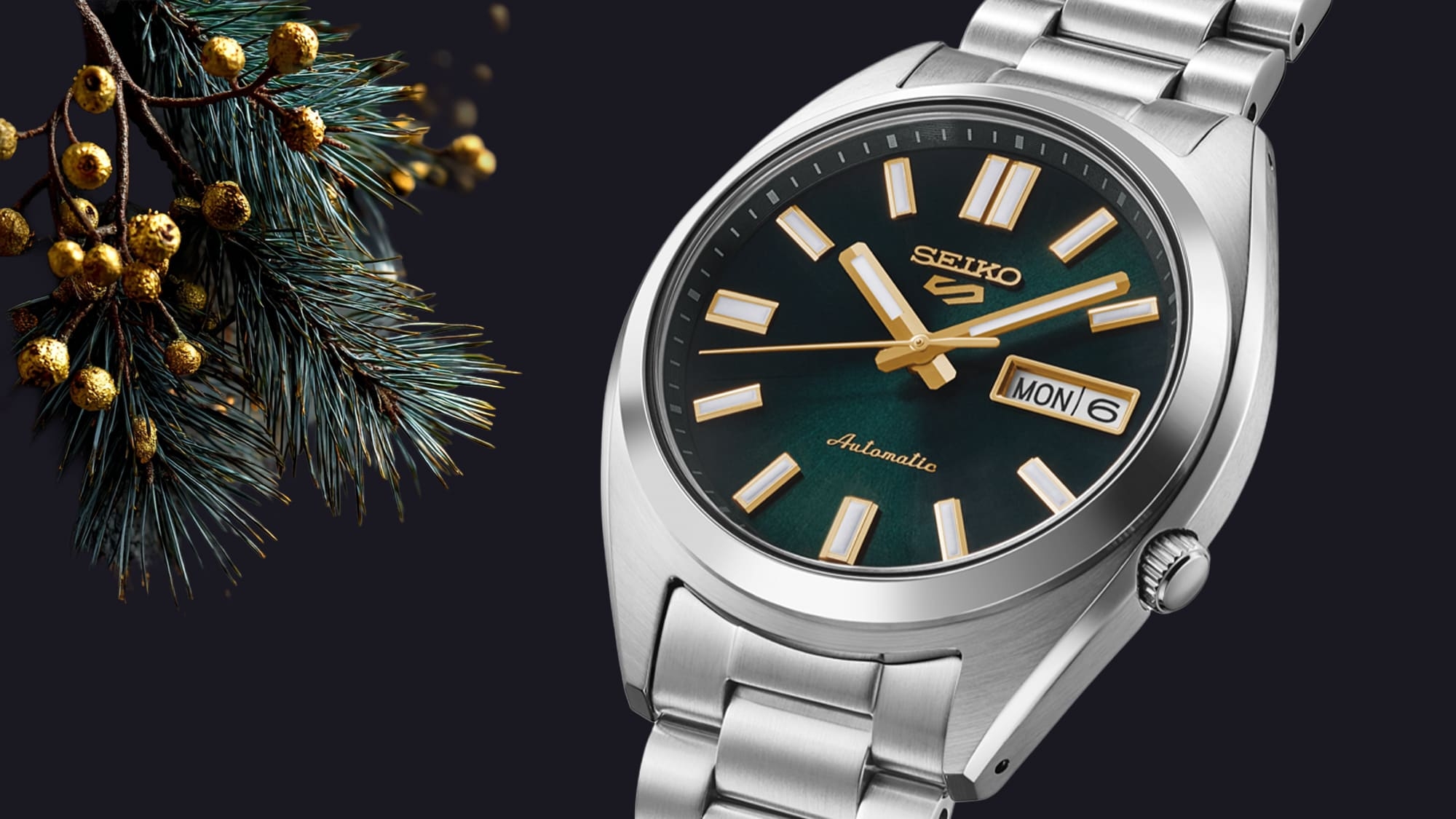 Seiko 5 Sports SRPL57K1 “Vintage Gold Collection In Green Tie“, mert a zöld egy örök kedvenc