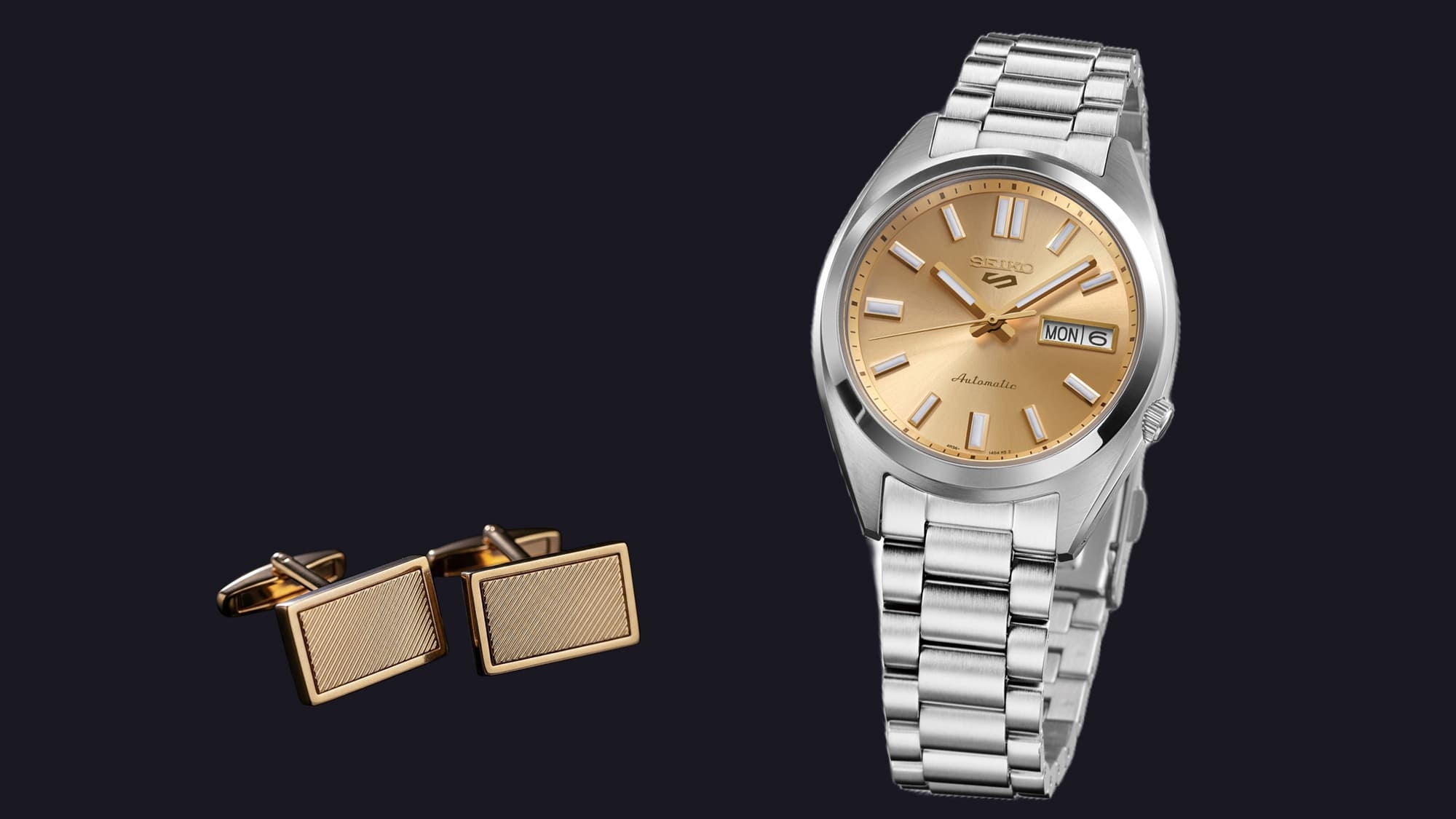 Seiko 5 Sports SRPL59K1 “Vintage Gold Collection In Gold Cufflinks“, csillogó sikerekre várva