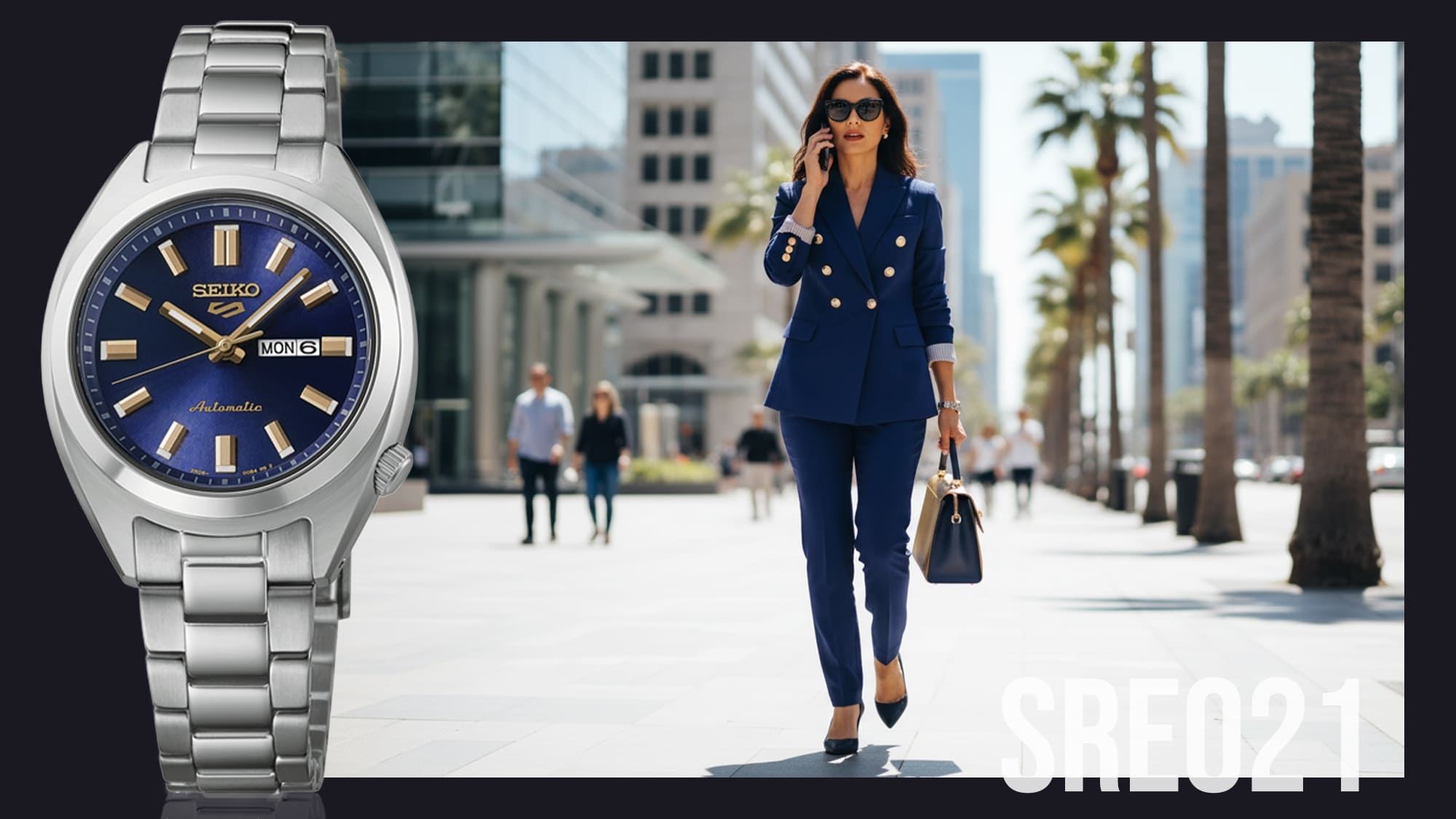 Dinamikusan is lehet elegánsan, ezt sugallja az SRE021K1 modell. A kék és arany klasszikus párosa itt egy kicsit kevésbé kötött, de még bőven az elegancia területén mozog, a mindennapokban is lehet egy kissé finomabban megjelenni vele.