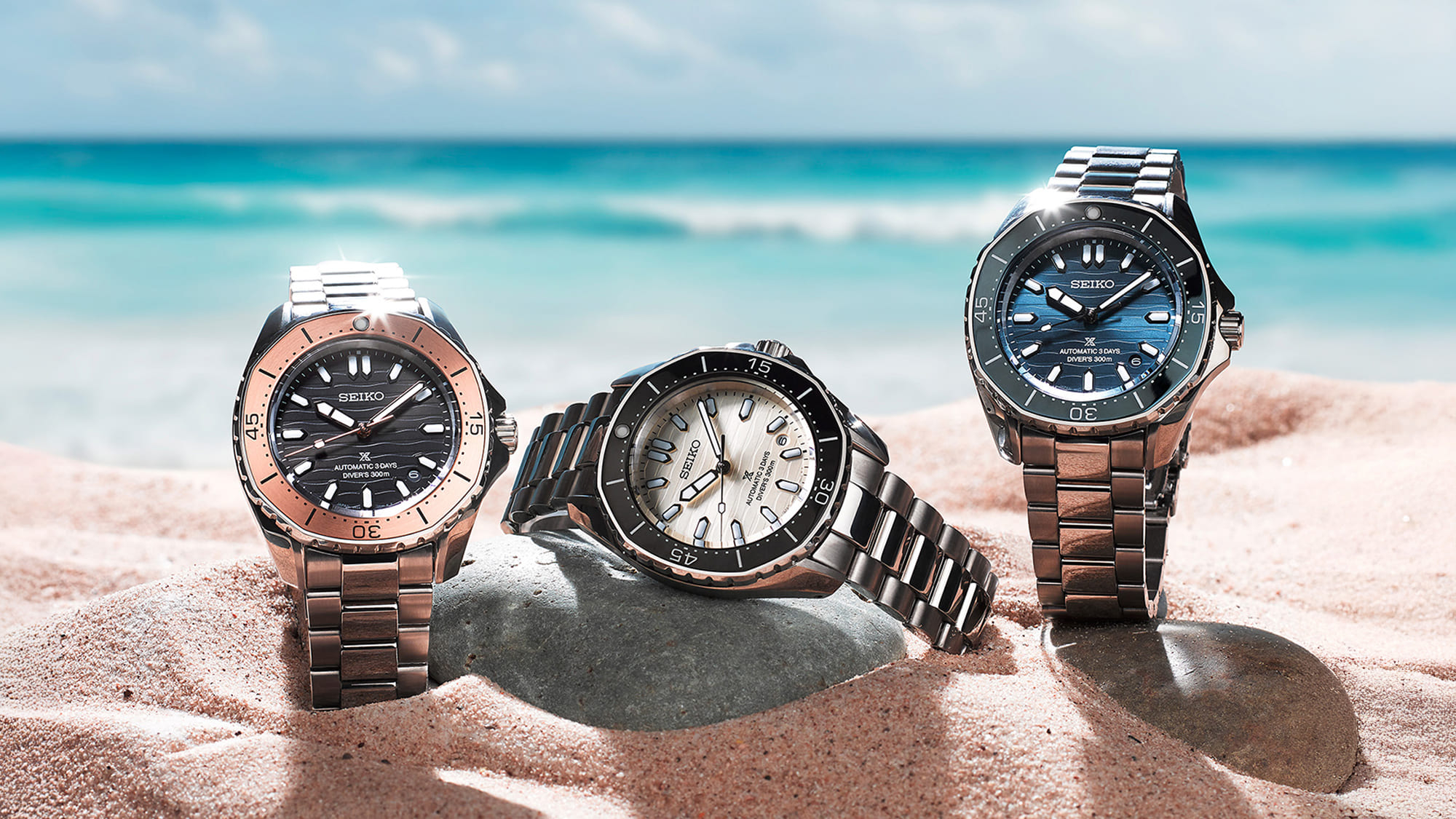 Az újdonságokból három is érkezik, mindegyik egyedi stílusban, amely eltér a búvárórák eddig megszokott színvilágától, ami közös bennük, az az elegancia, amelyet sugároznak megjelenésükkel.