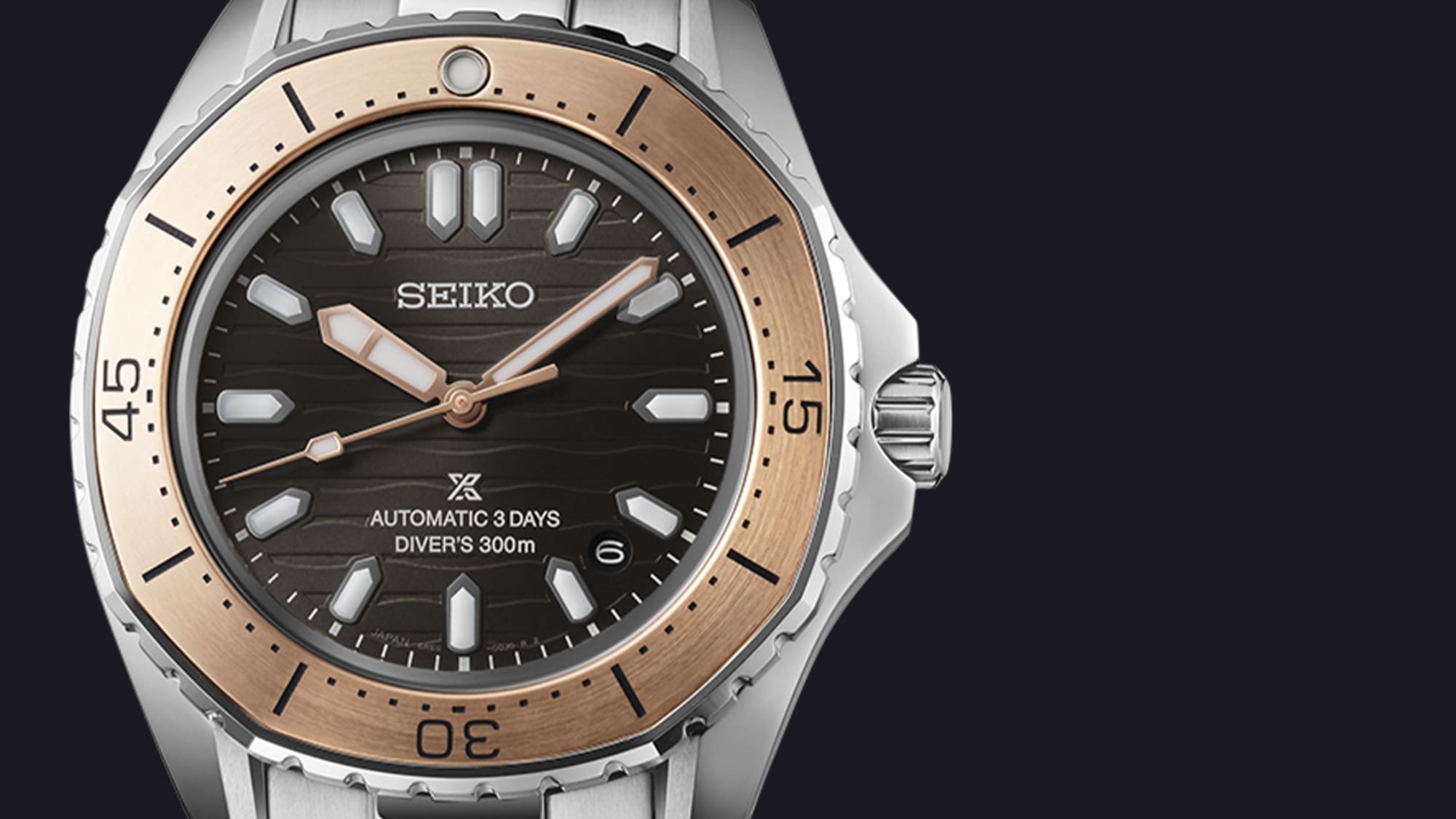 A kobaltkék számlap és lünetta, a pezsgőszín és a bronz az eleganciát csempészik a sportos modellek közé, a 3 napos járástartalékot biztosító 6R55 kaliber és a diver’s 300m vízállóság pedig a sportos érzést adják az elegáns megjelenés mellé - két világ, amely legalább annyira összeillik, mint amennyire távolinak tűnik egymástól.