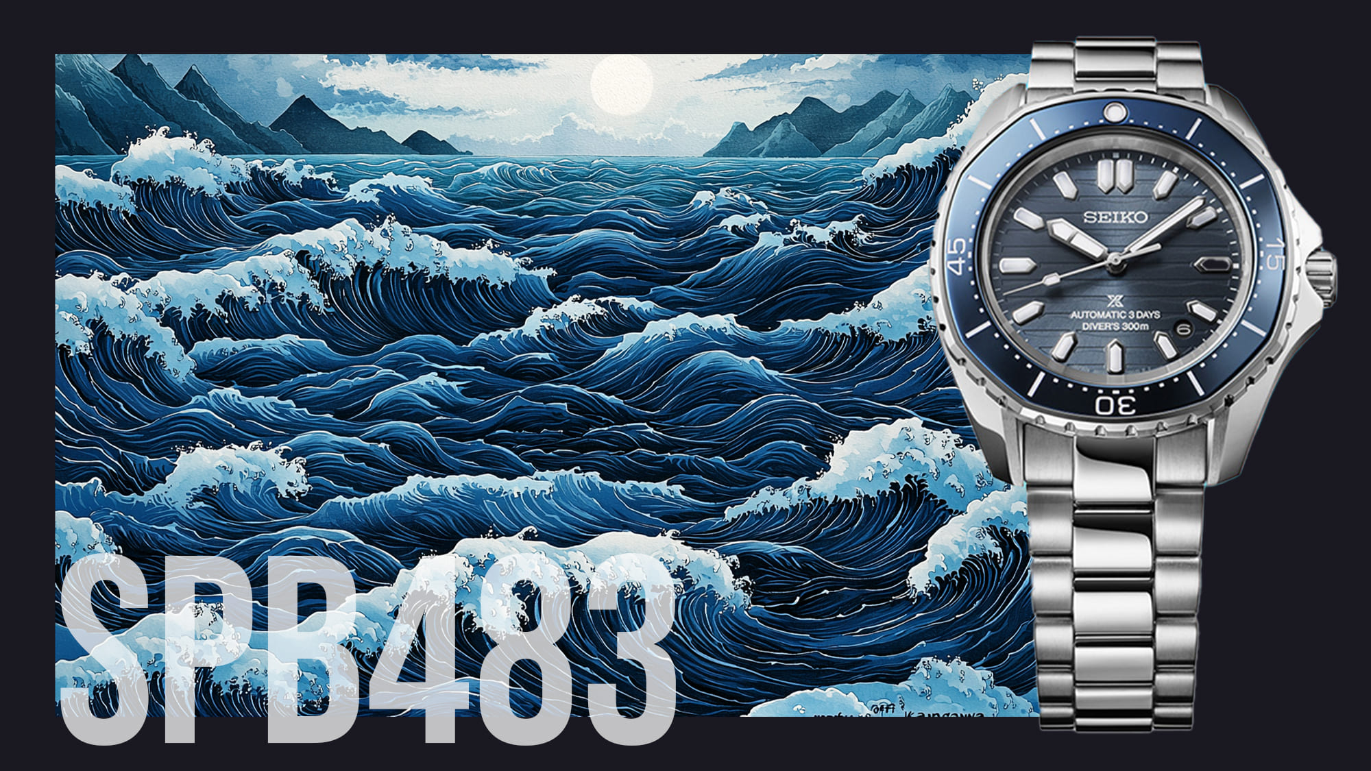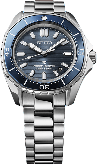 Az eleganciából is a klasszikusabb stílus a kobaltkék számlap és az ezzel megegyező színű lünetta, a tengerek hullámait mintázó számlapjához tökéletesen illik a szín. A tok formája is ívesebb a korábbi Seiko búvármodellekénél, a hullám motívum ott is visszaköszön.