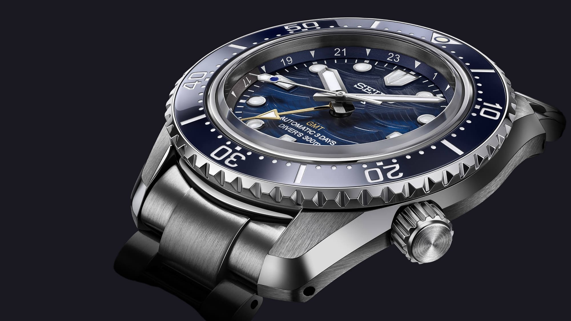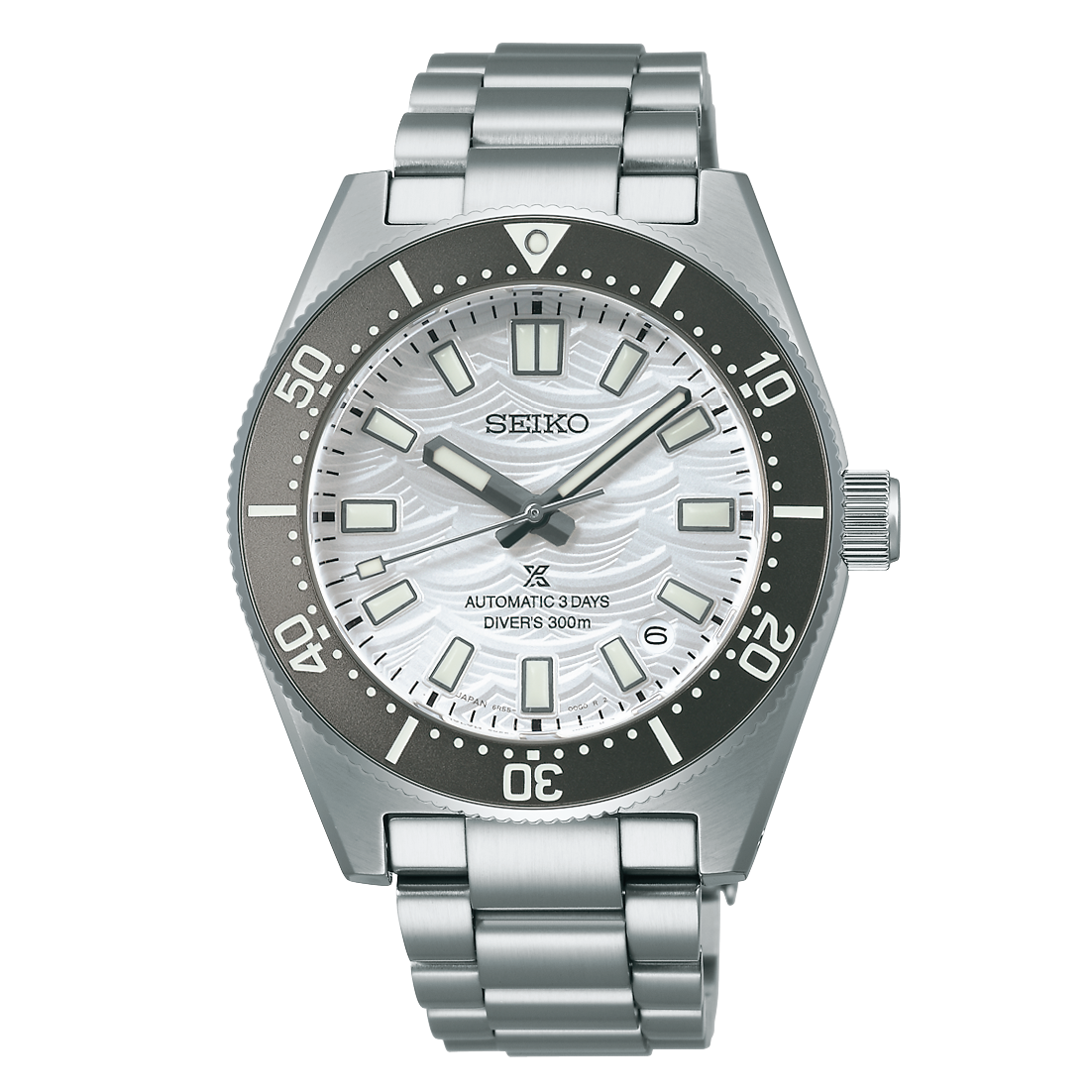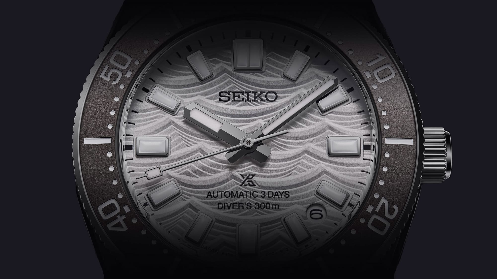 Az egyik leglátványosabb eleme mégis a számlap, amely a Seiko búváróra rajongóinak oly kedves szimbólumot, az órák hátlapján megtalálható hullámokat mintázza, a dátumablak, amely immár kerek formájú, 4:30-nál helyezkedik el, ezzel is segítve a számlap szimmetriáját.