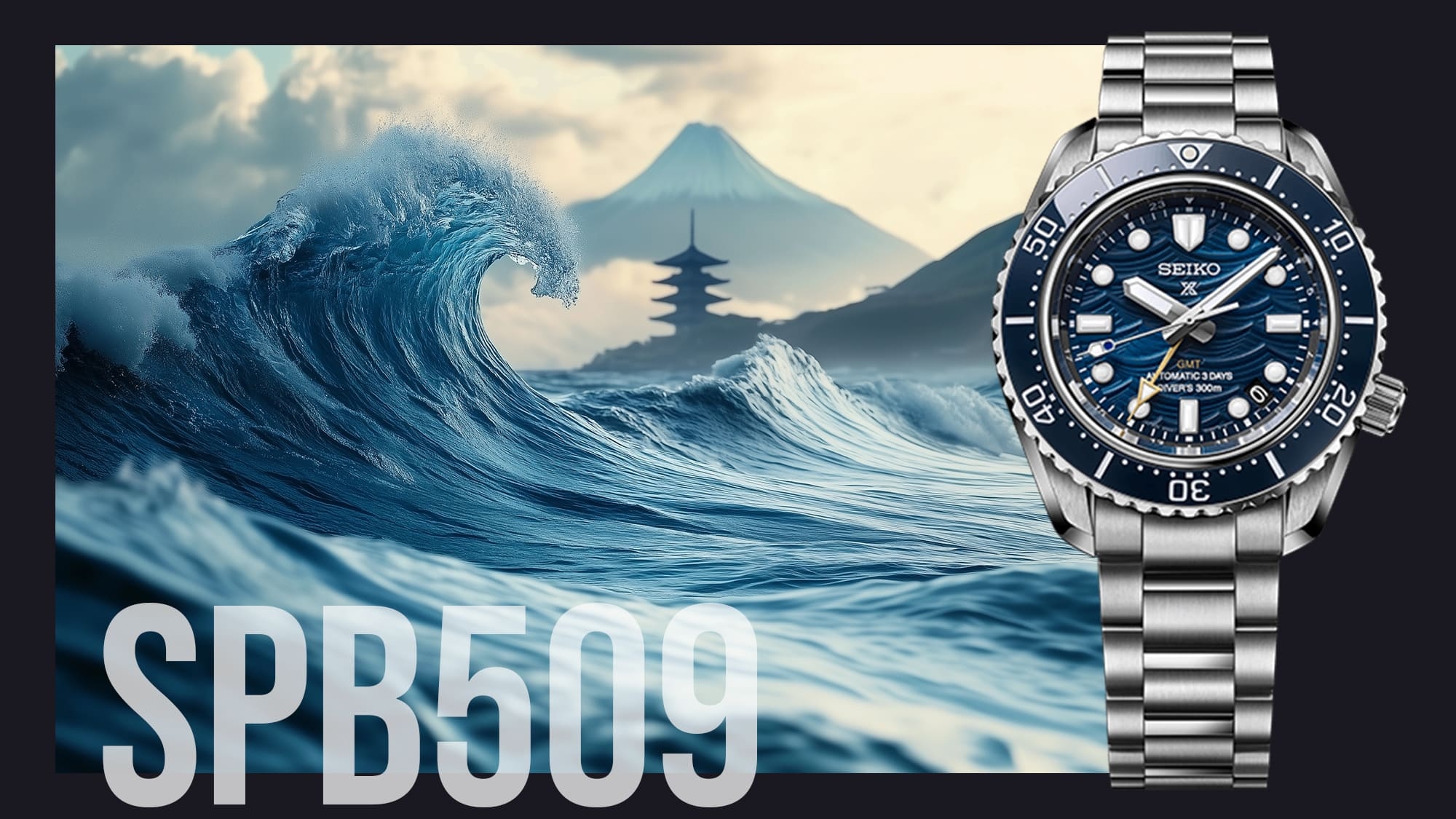 Az SPB509J1modell szintén egy limitált darab, amely 6000 darabban készül. Ez a modell az 1968-as nagy előd stílusában készült, és aki kicsit is elmerült már a japán képzőművészetekben, azonnal megérzi, mit idéz fel a számlap - Hokusai híres fakocka-nyomatát, a Kanagawa nagy hullámait, amelyet gyakran emlegetnek együtt a Seiko búvárokkal a hátlapon látható hullám motívum miatt.