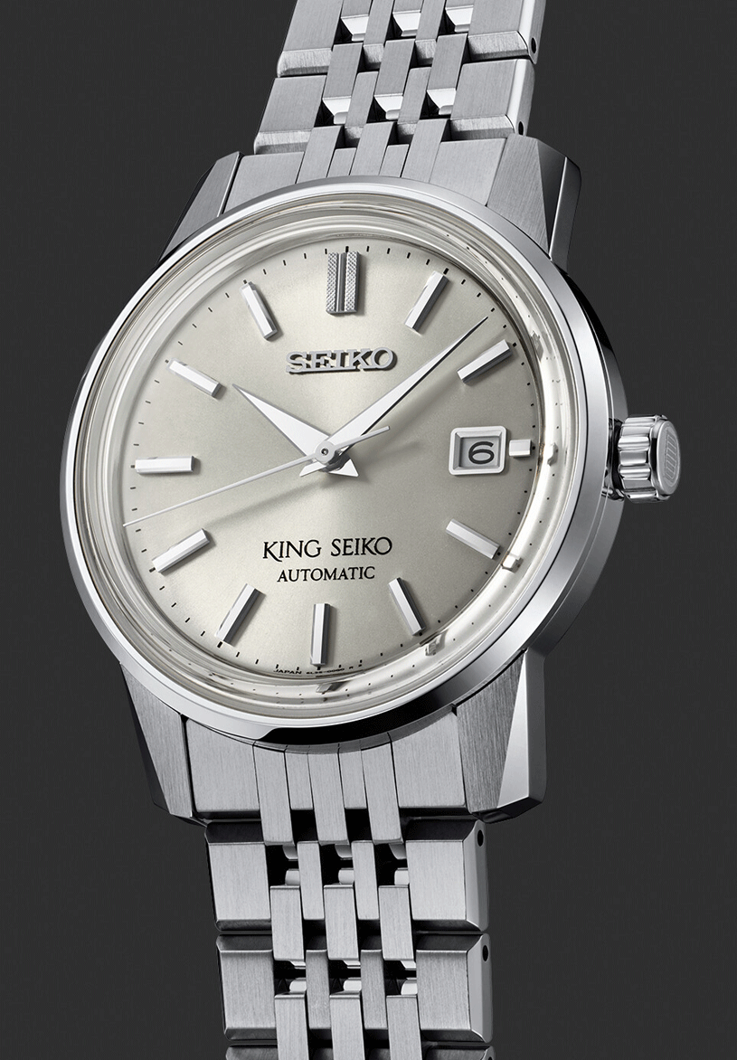 King Seiko sorozat megjelenése tökéletesen hozza vissza a hatvanas-hetvenes évek érzéseit, ebben segít a 44KS stílusába készülő tok formája éppúgy, mint a fémszíj kialakítása. A nemesacél tok és szíj szálhúzott felülete is a vintage hangulatot erősíti, ahogy a “box shaped” néven ismert szögletes formájú zafír kristály óraüveg is, amely kiemelkedik a tokból. Ez tükröződésmentes bevonatot kapott, így szinte minden szögből tökéletesen leolvasható az óra. A modern műszaki tartalomnak köszönhetően a tok 10 Bar vízállóságú, így a mindennapokban teljes értékű társ lehet, még kisebb vizes kalandokban is. A King Seiko érzést erősíti a koronán és a hátlapon is megtalálható domború King Seiko logó. A modell a Seiko 6L35 kalibert kapta, mely a felső kategóriás Seiko modellek sajátja. Ennek mechanikus automata szerkezetnek a különlegessége a vastagsága, amely mindössze 3.7 mm.