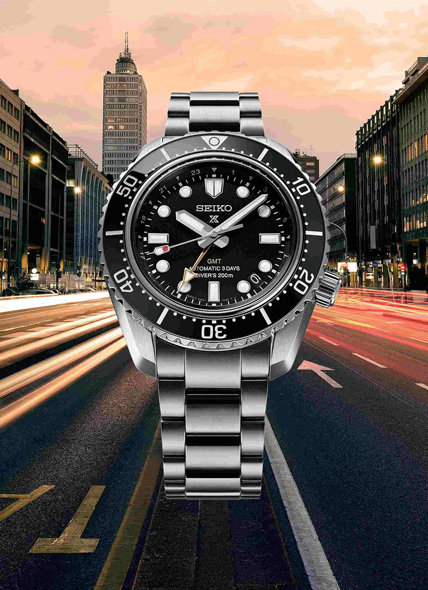 Búváróra nem csak a tengerek mélyén jön jól, de a mindennapokban is hasznos lehet ha tudjuk, nincs miért aggódni az óránk miatt. A 200 méteres vízállóság télen-nyáron biztonságot ad, megóvja a szerkezetet akár a hétköznapi, akár extrémebb körülmények között is. Az SPB383J1 modell fekete számlapos kiadása a búvárórák legelső modelljeinek stílusát hozza el, máig a nagy klasszikus, az egyik legkedveltebb színösszeállítás. Az arany GMT mutató és felirat egy csipetnyi eleganciát csempész a fekete praktikus stílusába, éppen annyit, amennyi jelzi az óra színvonalát. Az új 6R54 kaliber a Seiko 6R szerkezeteinek sorát bővíti, és a legendás megbízhatósága mellett két fontos, a mindennapokban is használható jellemzője van. A legfontosabb a GMT komplikáció, amely most mutatkozik be a 6R kaliber családban, és utat nyit a további érdekesebbnél érdekesebb GMT modell megjelenése előtt.A plusz mutató a jellegzetes formájával diszkréten jelenik meg a számlapon, mégis hangsúlyos többletet ad ahhoz, és a színeivel további lehetőség nyílik a design akár elegánsabbá, akár sportosabbá tételére. Az új 6R54 kaliber másik fontos tulajdonsága a 72 órányi járástartaléka, amely a plusz komplikáció fényében még nagyobb jelentőségű, és a mindennapokban akár három napra is engedi pihentetni az órát anélkül, hogy azt újra be kellene állítani.