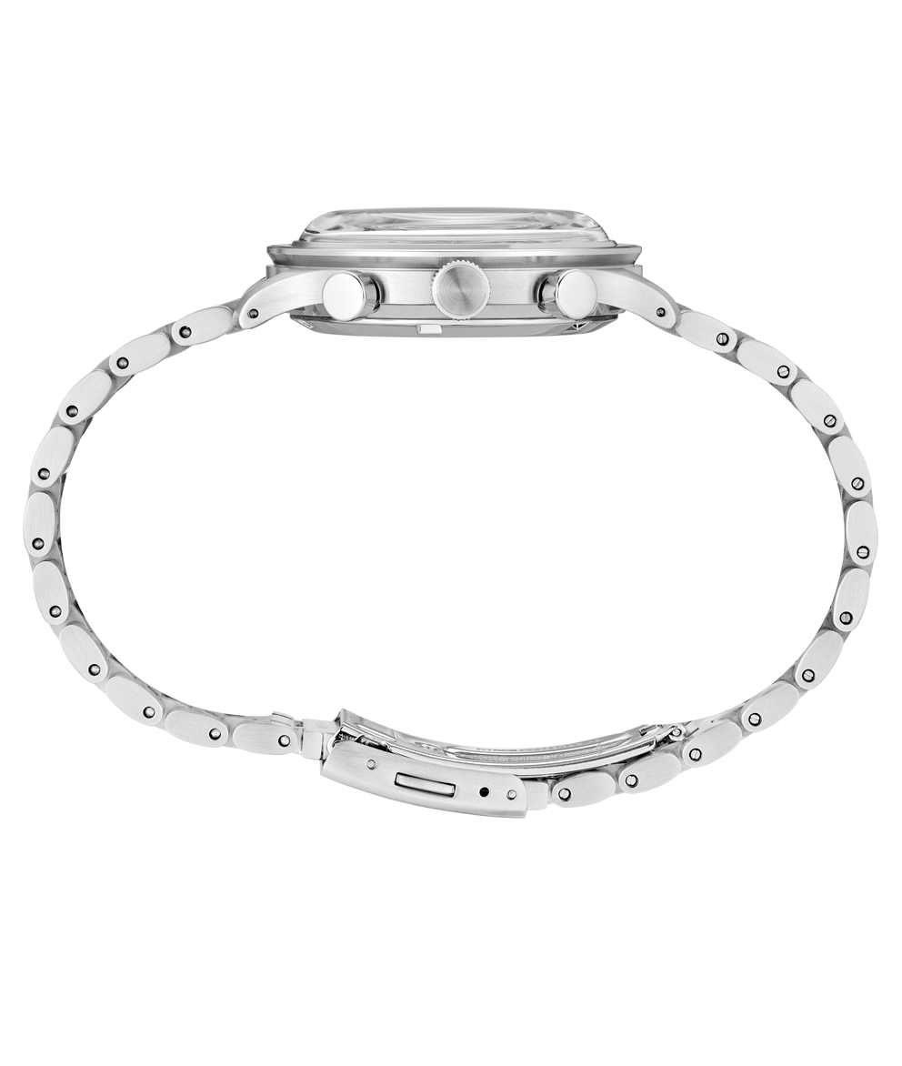 A kék számlapok népszerűsége töretlen, minden stílushoz illenek, egy kis laza eleganciát sugallnak és nehéz nekik ellenállni. Az SSB477P1 modell is ebbe a sorozatba tartozik, 38.7 mm az átmérője, ami szintén a kényelmes viselet záloga. A 8T63 kaliber egy úgynevezett meca-kvarc (hívják mecha-quartz-nak is), amely egy kvarc szerkezet mechanikus stopper vezérléssel, hogy a kronográf funkció használata közben megmaradjon az érzés, ahogy a stopper gombjait lenyomva kis kattanással, valódi időmérőként indítja és állítja le a mérést. A megoldás a Seiko mechanikus kronográfjaitól származik, és a megbízható működése mellett a mutatók nullázását egyszerre és egyetlen mozdulattal végzi, míg a hagyományos kvarc kronográfok jellemzően a motorral hajtva valamely irányba nulláznak le.